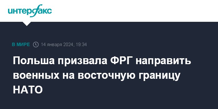 Москва. 14 января. INTERFAX.RU - Польша ожидает, что Германия направит своих солдат на усиление восточного фланга НАТО, заявил заместитель польского министра иностранных дел Анджей Шейна.