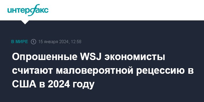 Опрошенные WSJ экономисты считают маловероятной рецессию в США в 2024 году