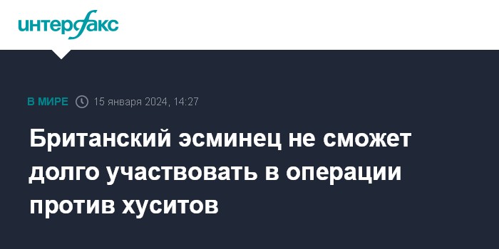 Москва. 15 января. INTERFAX.RU - Эсминец британского Королевского флота HMS Diamond, который находится в южной части Красного моря, не сможет долго противостоять ракетным ударам йеменских хуситов из-за ограниченности боекомплекта, сообщило издание UK Defence Journal.