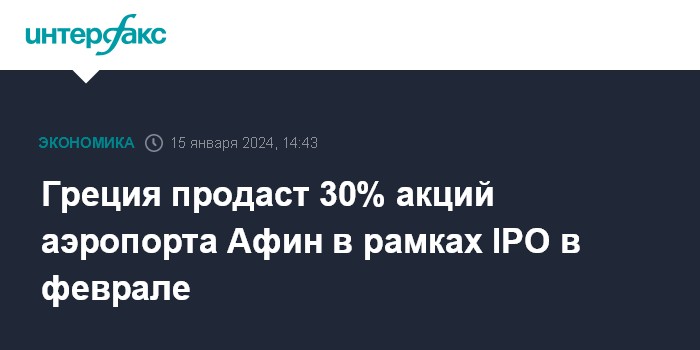 Греция продаст 30% акций аэропорта Афин в рамках IPO в феврале