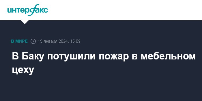 Москва. 15 января. INTERFAX.RU - В Баку полностью потушили пожар в мебельном цеху, сообщили в МЧС Азербайджана.