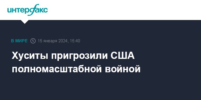 Москва. 15 января. INTERFAX.RU - Йеменские мятежники хуситы выразили уверенность, что смогут нанести США стратегическое поражение в случае продолжения противостояния, заявили о готовности к полномасштабной войне с Соединенными Штатами, передает в понедельник агентство ИРНА.