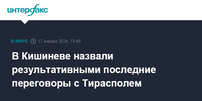 В Кишиневе назвали результативными последние переговоры с Тирасполем
