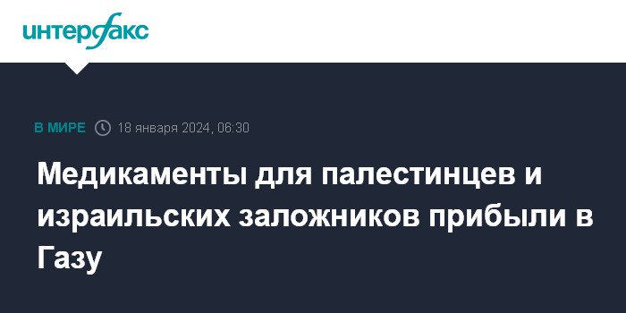 Москва. 18 января. INTERFAX.RU - Лекарства для палестинцев и удерживаемых ХАМАС в Газе израильских заложников ввезены на территорию анклава, сообщил представитель катарского МИД Маджед аль-Ансари.