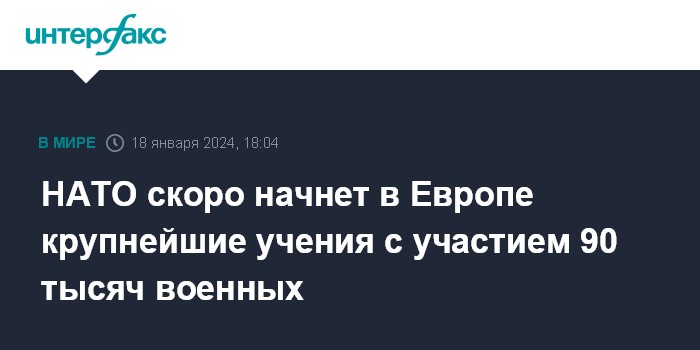 "Сегодня мы объявляем о старте учений Steadfast Defender 2024, которые начнутся на следующей неделе и продлятся до мая. Steadfast Defender будут крупнейшими учениями НАТО за десятилетия с участием примерно 90 тысяч военнослужащих из всех стран альянса, а также из нашего партнера Швеции", - сказал он после заседания высшего военного органа НАТО - Военного комитета.