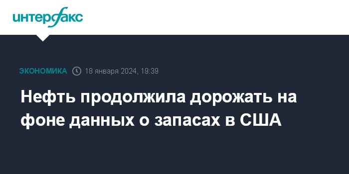 Москва. 18 января. INTERFAX.RU - Цены на нефть эталонных марок продолжили рост вечером в четверг после публикации данных о недельном изменении запасов нефти и нефтепродуктов в Соединенных Штатах.