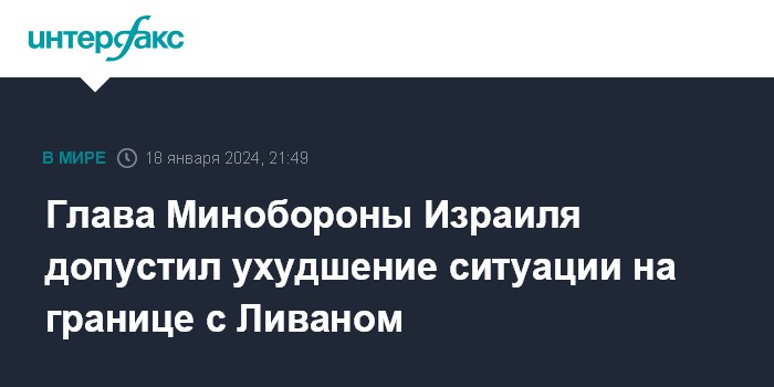 Москва. 18 января. INTERFAX.RU - Израилю надо принимать в расчет возможность серьезной дестабилизации обстановки на границе с Ливаном, заявил глава израильского Минобороны Йоав Галлант в четверг .
