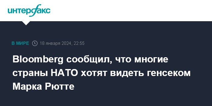 "Страны, поддерживающие идею дать Рютте возглавить НАТО, работают над тем, чтобы гонка за эту должность завершилась к этому лету", - информирует агентство.