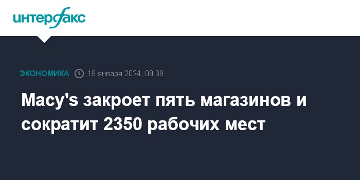 Macy's закроет пять магазинов и сократит 2350 рабочих мест