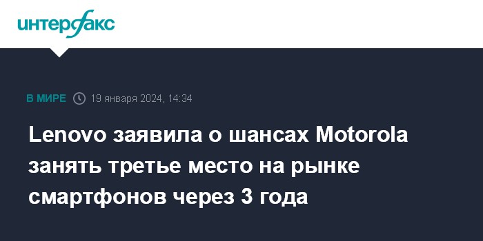 Lenovo заявила о шансах Motorola занять третье место на рынке смартфонов через 3 года