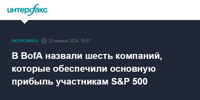 В BofA назвали шесть компаний, которые обеспечили основную прибыль участникам S&P 500