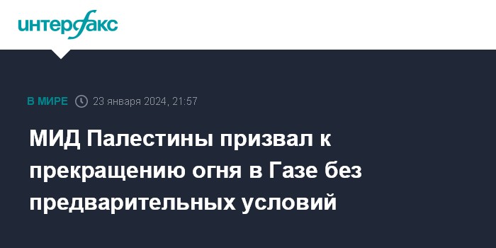 Москва. 23 января. INTERFAX.RU - Палестинская национальная администрация хотела бы видеть постоянное прекращение огня в cекторе Газа без предварительных условий, заявил глава МИД Государства Палестина Рияд аль-Малики.