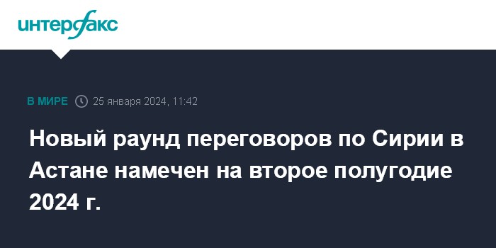 Москва. 25 января. INTERFAX.RU - Следующий раунд переговоров по Сирии в столице Казахстана Астане пройдет во второй половине 2024 года, это следует из совместного заявления стран-гарантов "астанинского процесса" (РФ, Турция и Иран).