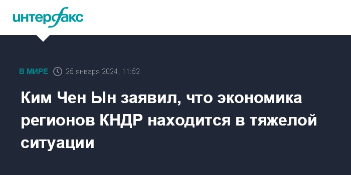 Москва. 25 января. INTERFAX.RU - Лидер КНДР Ким Чен Ын признал, что экономика регионов страны находится в тяжелой ситуации.