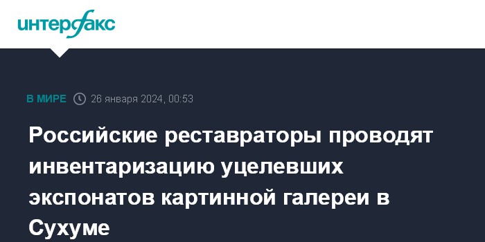 Она добавила, что инвентаризация будет проводиться до понедельника, "а затем реставраторы будут приезжать вахтовым методом и работать, а часть картин повезут в Москву и Санкт-Петербург, потому что в Абхазии нет условий для проведения реставрационных работ".