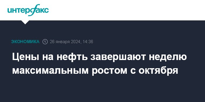 Москва. 26 января. INTERFAX.RU - Котировки нефти опускаются в пятницу, но завершают неделю максимальным ростом с октября.