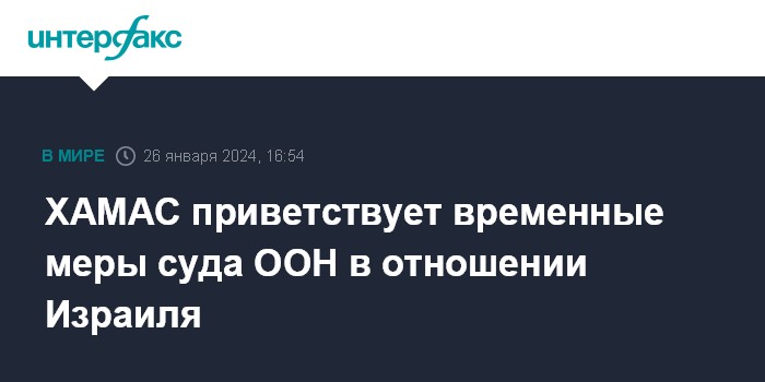 Москва. 26 января. INTERFAX.RU - Палестинское движение ХАМАС заявило, что приветствует постановление Международного суда ООН, предписывающее Израилю принять меры по защите жителей сектора Газа.