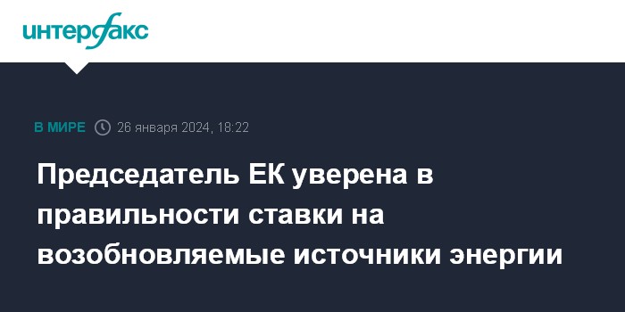 Председатель ЕК уверена в правильности ставки на возобновляемые источники энергии