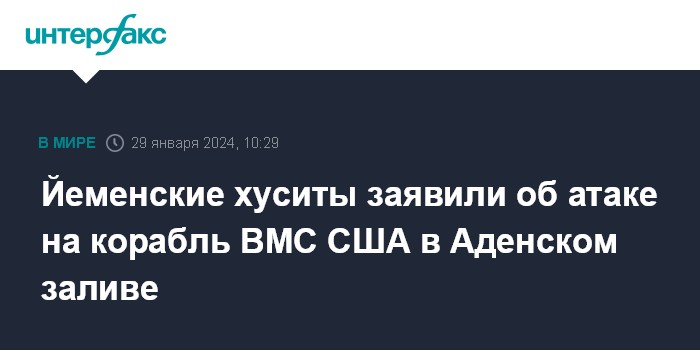 Йеменские хуситы заявили об атаке на корабль ВМС США в Аденском заливе