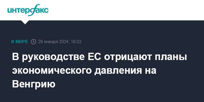 Москва. 29 января. INTERFAX.RU - В Евросоюзе опровергают публикацию о том, что ЕС планирует оказать экономическое давление на Венгрию в случае, если Будапешт заблокирует новый пакет помощи Киеву. Об этом пишет The Independent со ссылкой на высокопоставленного чиновника ЕС.