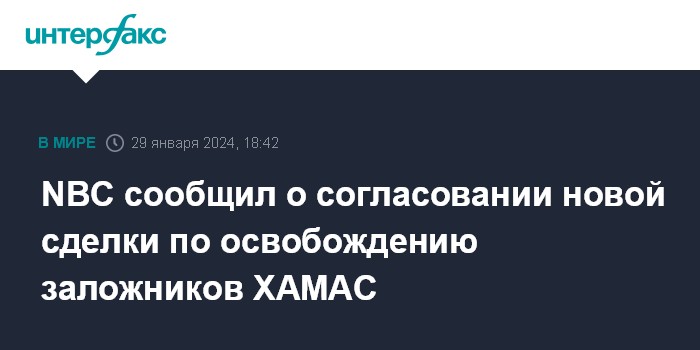 NBC сообщил о согласовании новой сделки по освобождению заложников ХАМАС