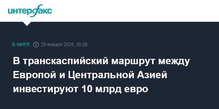 Москва. 29 января. INTERFAX.RU - Европейские и международные финансовые институты выделят 10 млрд евро на инвестиции в проект транспортного коридора между Европой и Центральной Азией, объявил заместитель председателя Еврокомиссии Валдис Домбровскис на форуме инвесторов в Брюсселе.