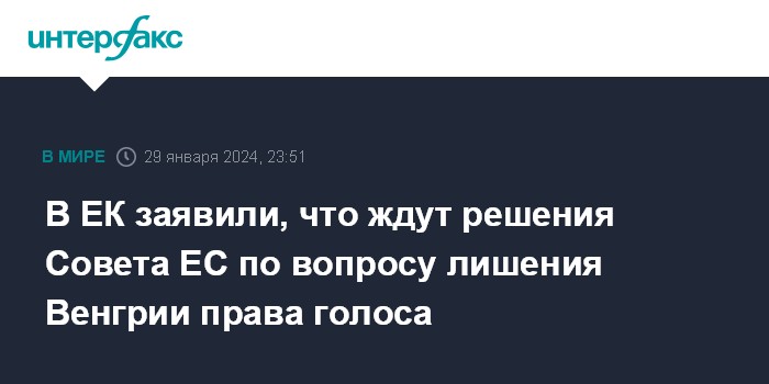В ЕК заявили, что ждут решения Совета ЕС по вопросу лишения Венгрии права голоса