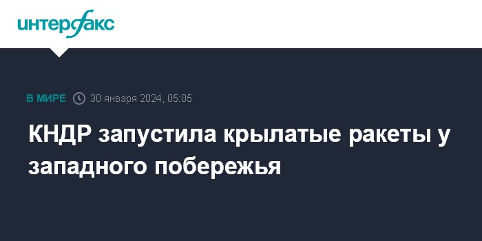 Москва. 30 января. INTERFAX.RU - Северная Корея осуществила запуск нескольких крылатых ракет у западного побережья во вторник, сообщает "Ренхап" со ссылкой на южнокорейских военных.