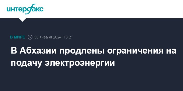 Москва. 30 января. INTERFAX.RU - В Абхазии продлили на неопределенный срок ограничения на подачу электроэнергии, которые ранее вводили до 31 января, сообщил журналистам руководитель абхазской энергетической компании "Черноморэнерго" Тимур Джинджолия.