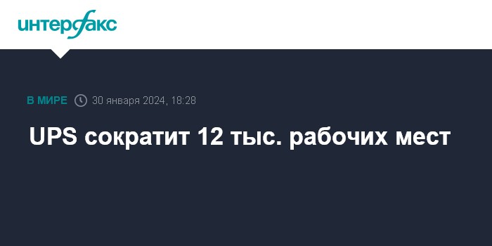 Москва. 30 января. INTERFAX.RU - Крупнейшая в мире служба экспресс-доставки United Parcel Service (UPS) планирует принять меры для снижения расходов, которые приведут к сокращению порядка 12 тыс. рабочих мест.
