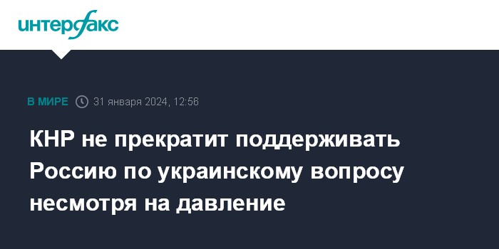КНР не прекратит поддерживать Россию по украинскому вопросу несмотря на давление