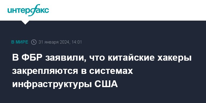 В ФБР заявили, что китайские хакеры закрепляются в системах инфраструктуры США