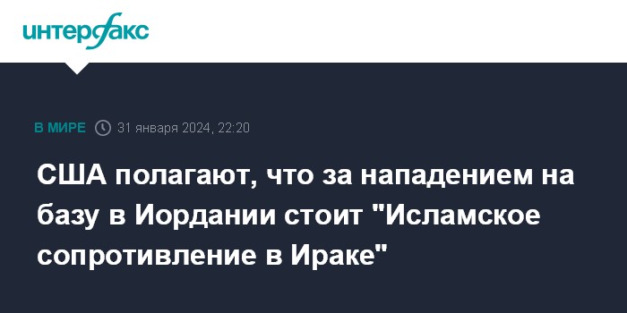 Москва. 31 января. INTERFAX.RU - В Вашингтоне считают, что военизированное объединение "Исламское сопротивление в Ираке" совершило нападение на американскую базу на северо-востоке Иордании, заявил в среду представитель Совета национальной безопасности США Джон Кирби.