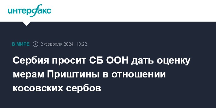 Сербия просит СБ ООН дать оценку мерам Приштины в отношении косовских сербов