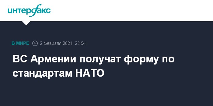 Москва. 2 февраля. INTERFAX.RU - Вооруженные силы Армении будут переведены на военную форму по стандартам НАТО, заявил министр обороны республики Сурен Папикян.