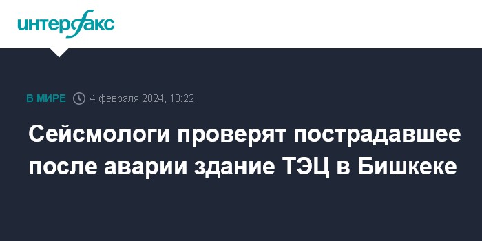 Москва. 4 февраля. INTERFAX.RU - Государственный институт сейсмологического строительства Киргизии проверит здание ТЭЦ Бишкека, пострадавшее после аварии, сообщает в воскресенье медиаштаб.