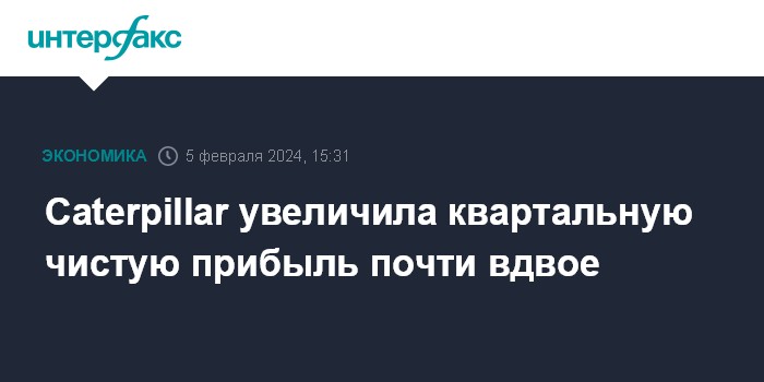Москва. 5 февраля. INTERFAX.RU - Американская Caterpillar, производитель оборудования для дорожного строительства и горнодобывающей промышленности, резко увеличила чистую прибыль в четвертом квартале, а скорректированный показатель оказался намного лучше ожиданий рынка.