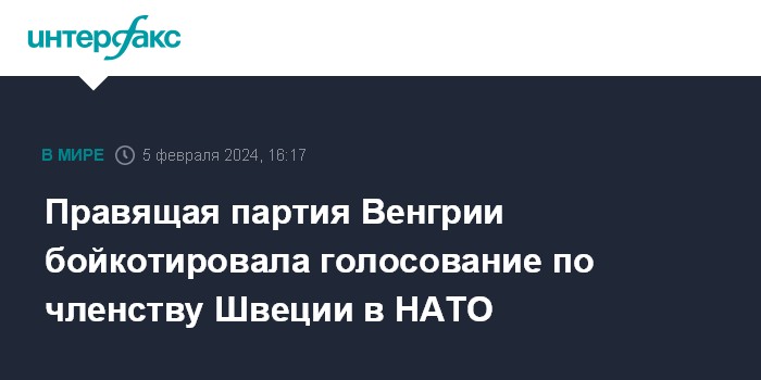 Правящая партия Венгрии бойкотировала голосование по членству Швеции в НАТО