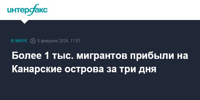 Москва. 5 февраля. INTERFAX.RU - Более 1 тыс. нелегальных мигрантов из африканских стран прибыли на испанские Канарские острова на 18 лодках за три дня, сообщает в понедельник Associated Press.