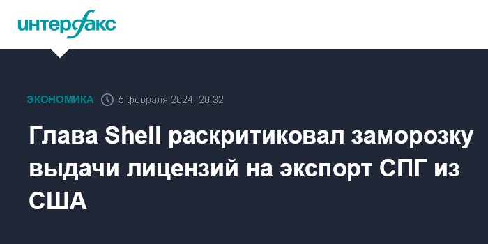 Глава Shell раскритиковал заморозку выдачи лицензий на экспорт СПГ из США