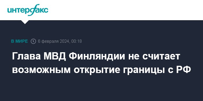 Москва. 6 февраля. INTERFAX.RU - Министр внутренних дел Финляндии Мари Рантанен не считает возможным открытие переходов на границе с РФ на текущий момент.