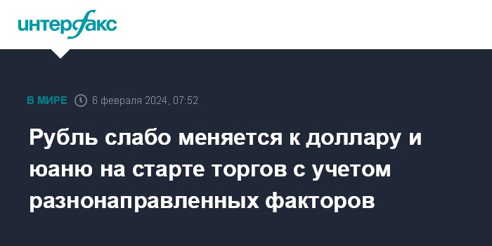 Рубль слабо меняется к доллару и юаню на старте торгов с учетом разнонаправленных факторов