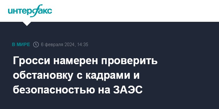 Москва. 6 февраля. INTERFAX.RU - Гендиректор МАГАТЭ Рафаэль Гросси собирается вскоре посетить Запорожскую АЭС, поскольку считает необходимым лично проверить, что там происходит.