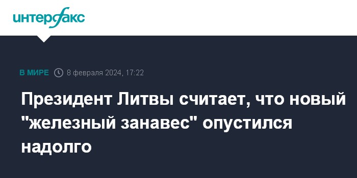 Однако, продолжил Науседа, "железный занавес" уже есть и, вероятно, опустился надолго". Он добавил, что не берется судить о сроках - "на десятилетия или на годы".