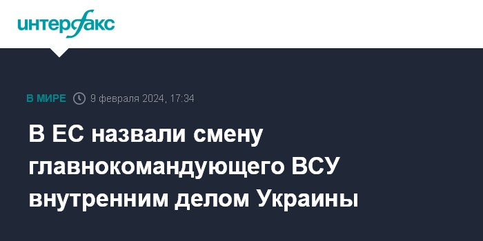 Москва. 9 февраля. INTERFAX.RU - В Еврокомиссии не стали комментировать отставку главнокомандующего Вооруженных сил Украины генерала Валерия Залужного, отметив, что это вопрос компетенции Киева.