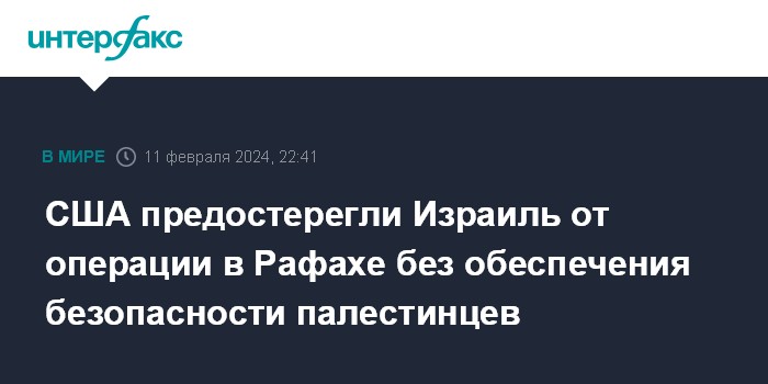 США предостерегли Израиль от операции в Рафахе без обеспечения безопасности палестинцев