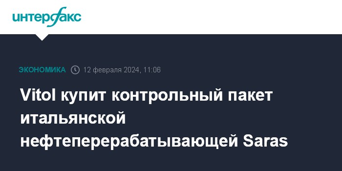 Москва. 12 февраля. INTERFAX.RU - Швейцарский трейдер Vitol планирует приобрести контрольный пакет акций итальянской нефтеперерабатывающей Saras, говорится в совместном пресс-релизе компаниц.