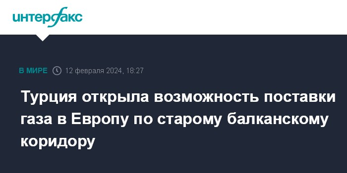 Москва. 12 февраля. INTERFAX.RU - Турецкий газотранспортный оператор Botas открыл возможность поставки газа в Европу по старому балканскому коридору в реверсном режиме.