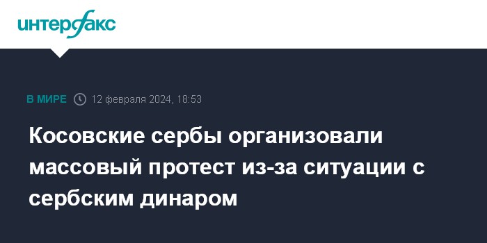 Москва. 12 февраля. INTERFAX.RU - Многотысячный митинг против решения косовских властей упразднить на территории края хождение сербского динара состоялся в сербской части Косовской Митровицы, одного из городов края со значительным сербским населением.