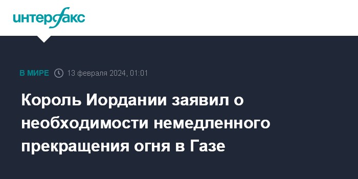 Король Иордании заявил о необходимости немедленного прекращения огня в Газе